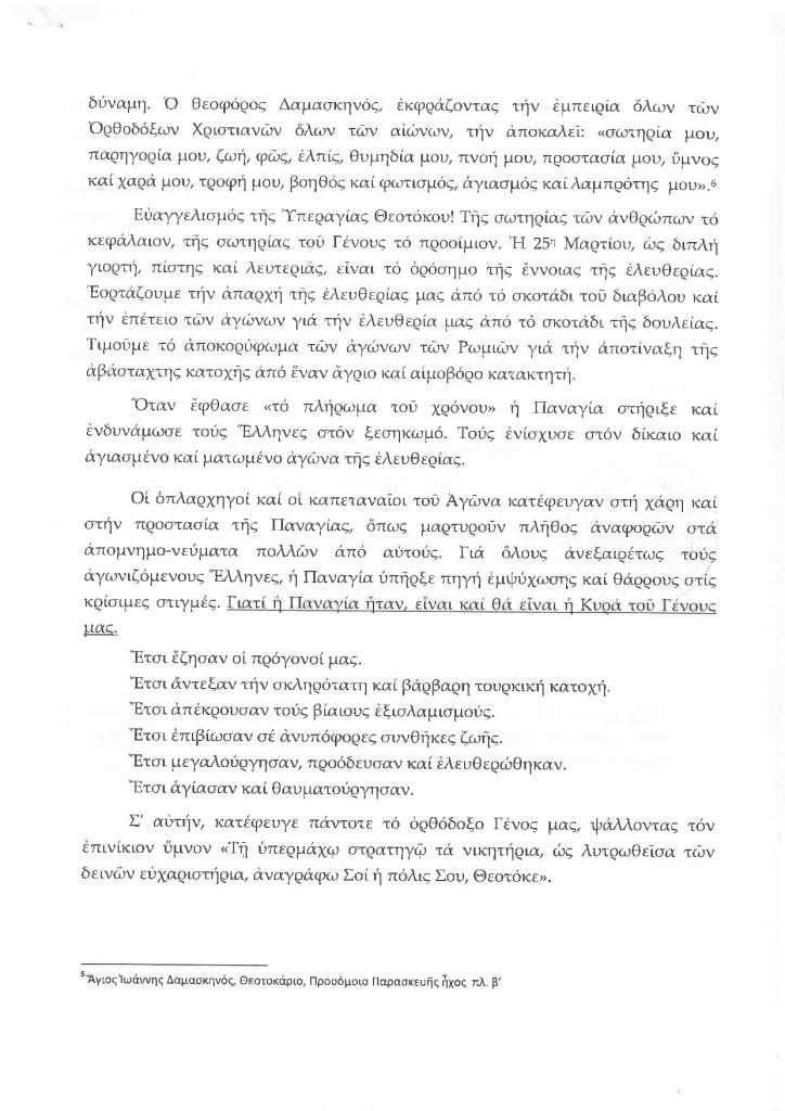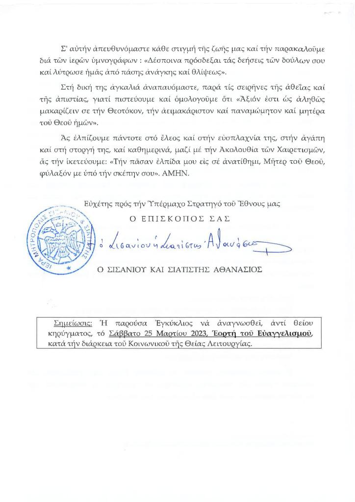 Ἐγκύκλιος ἐπί τή Ἑορτή τοῦ Εὐαγγελισμοῦ.