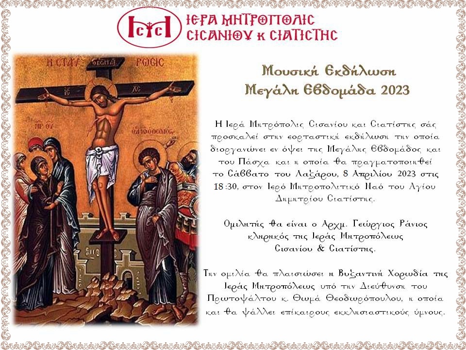 Μουσική εκδήλωση για την Μεγάλη Εβδομάδα.