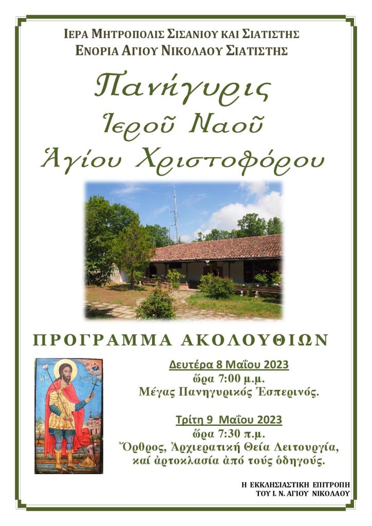 Πανήγυρις Ιερού Ναού Αγίου Χριστοφόρου.
