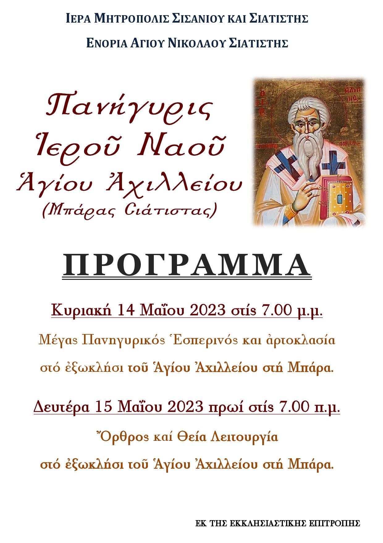 Πανήγυρις Ιερού Ναού Αγίου Αχιλλείου.