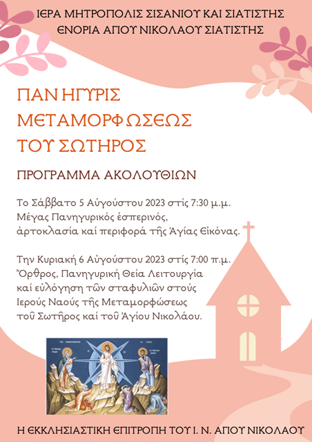 Πανήγυρις Μεταμορφώσεως του Σωτήρος στην ενορία του Αγίου Νικολάου Σιάτιστας.