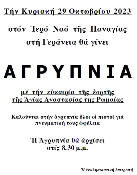 • Αγρυπνίες