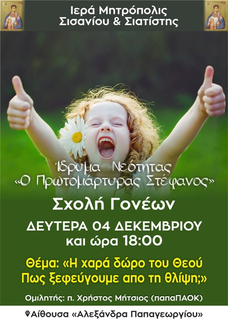 Σχολή Γονέων Ιεράς Μητροπόλεως Σισανίου και Σιατίστης. Τέταρτη συνάντηση.