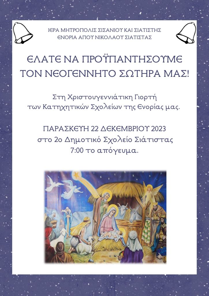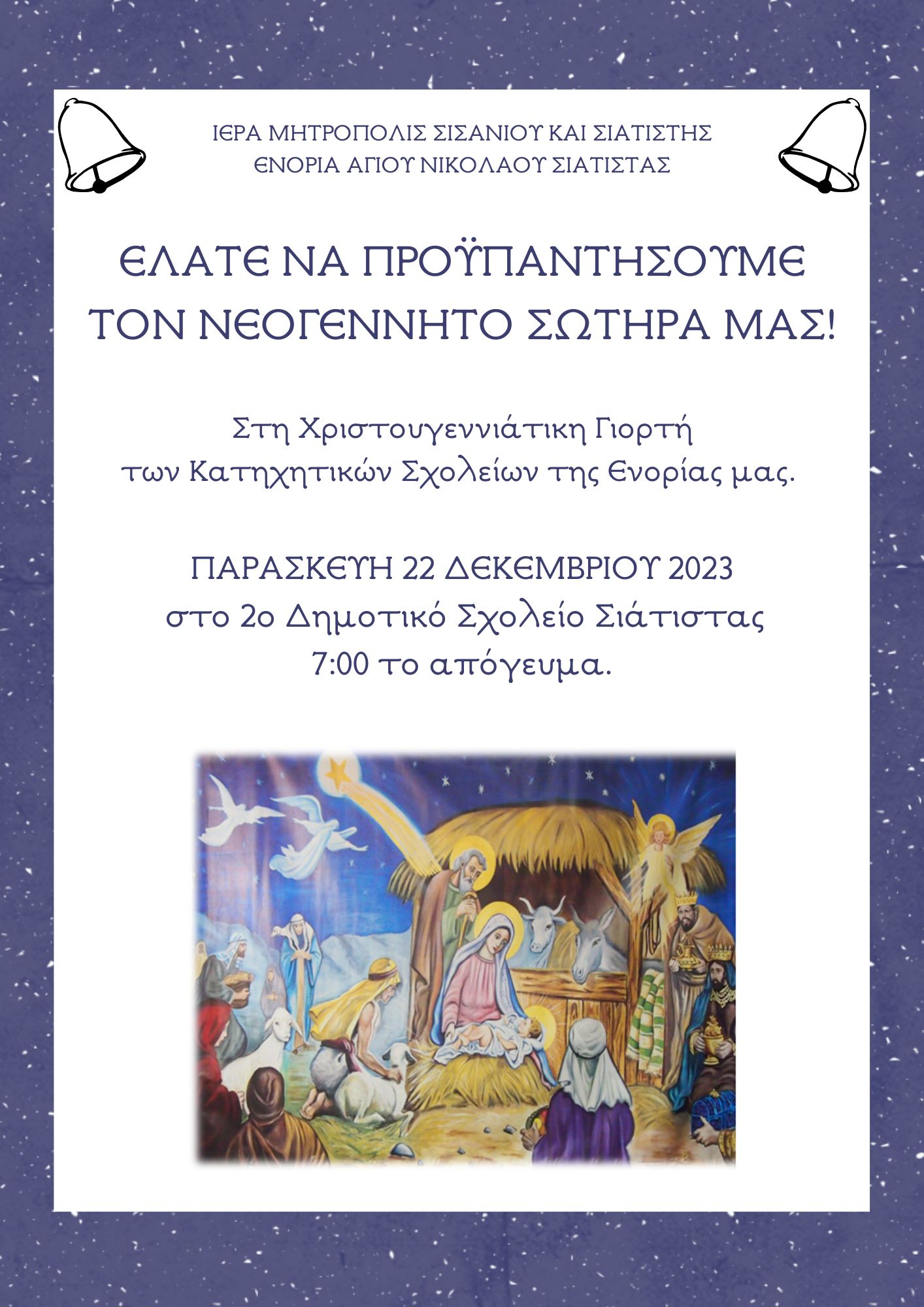 • Χριστουγεννιάτικη Γιορτή τῶν κατηχητικῶν Σχολείων τῆς ἐνορίας τοῦ Ἁγίου Νικολάου.