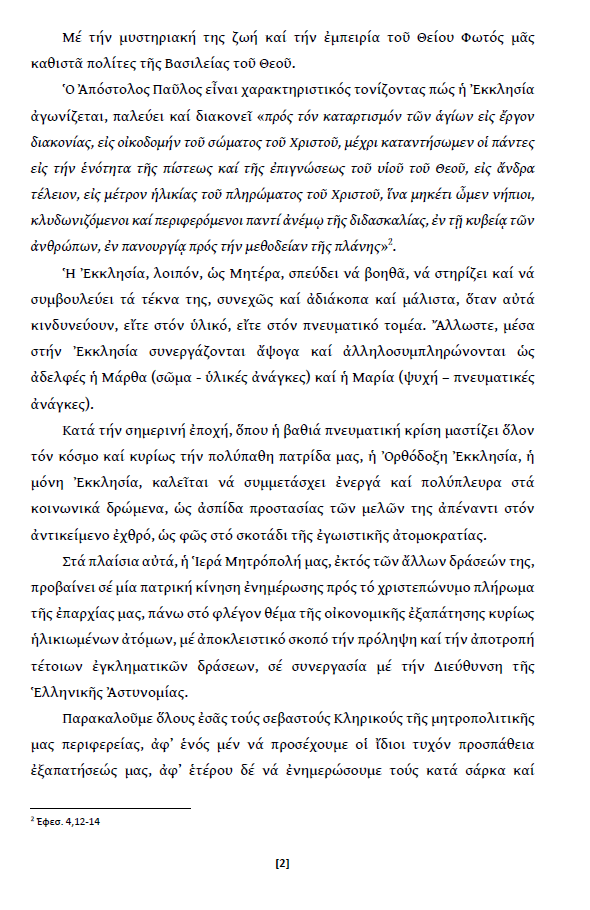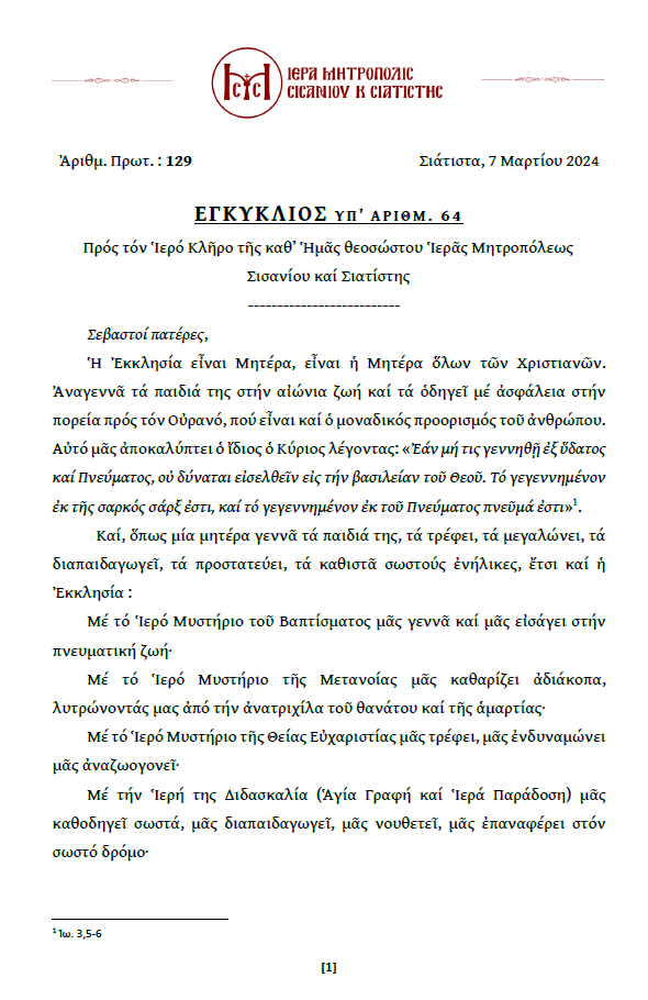 • Ἐγκύκλιος τοῦ Σεβασμιωτάτου Μητροπολίτου Σισανίου καί Σιατίστης κ.κ. Ἀθανασίου.