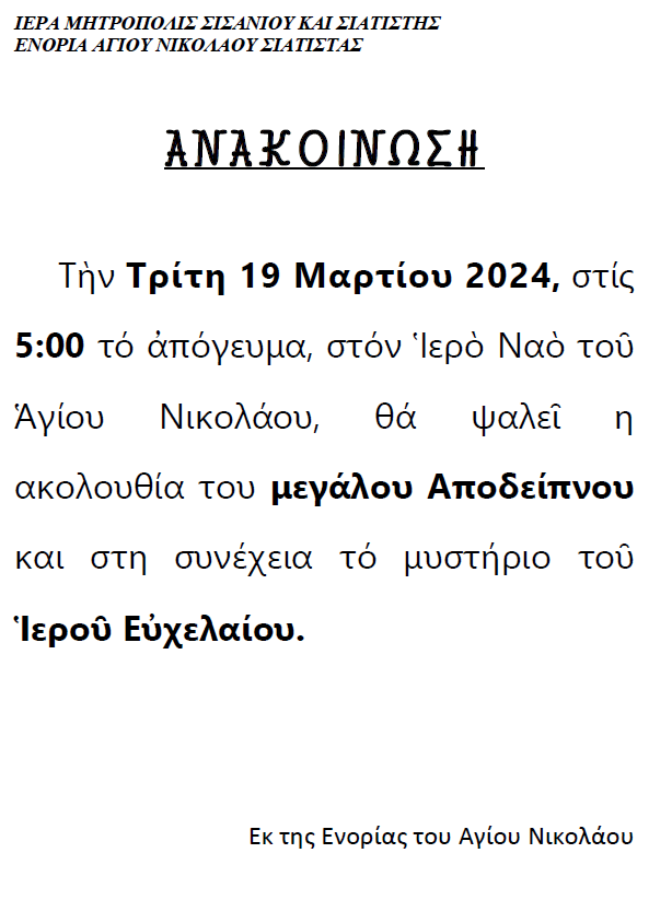 Παρακολουθήστε τις Ακολουθίες του Ι. Ν. Αγ. Νικολάου μέσα από το κανάλι μας στο YouTube (κλικ στο παρακάτω εικονίδιο)