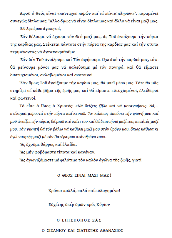 Ἐγκύκλιος Κυριακῆς Ὀρθοδοξίας τοῦ Σεβασμιωτάτου Μητροπολίτου Σισανίου καὶ Σιατίστης κ.κ. Ἀθανασίου.