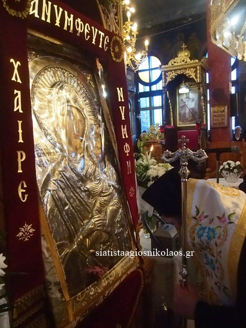 Εκεί πλήθος λαού χοροστατούντος του Σεβασμιωτάτου Μητροπολίτου μας κ. κ. Αθανασίου παρουσίας πλειάδας Ιερέων, του Δημάρχου Βοΐου των τοπικών αρχών και την Φιλαρμονική συνόδευσαν την εικόνα στον Ιερό Ναό του Αγίου Νικολάου όπου ακολούθησε ο πανηγυρικός εσπερινός της εορτής του Ευαγγελισμού.