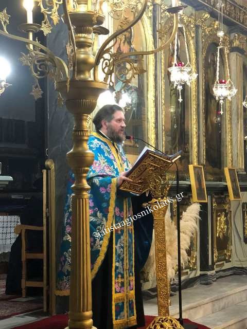 Το θείο λόγο κήρυξε ο Αρχιμανδρίτης Ιγνάτιος Μουρτζανός πρωτοσύγκελος της Ι. Μ. Λαρίσης και Τυρνάβου με θέμα την προσφορά της Παναγίας στο ανθρώπινο γένος. «Η έλευση Της προφητεύτηκε από την Παλαιά Διαθήκη και η ύπαρξή της αποτέλεσε διόρθωση της πτώσεως της Εύας στον επίγειο Παράδεισο.»
