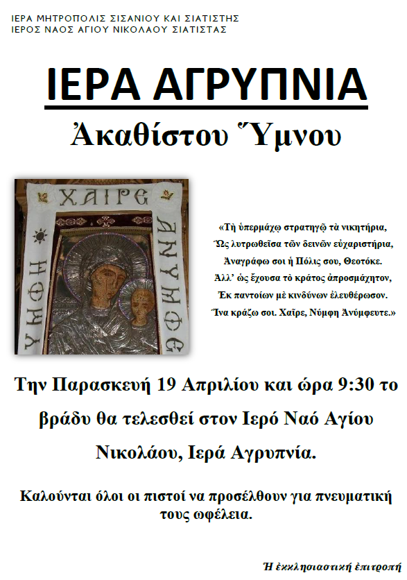 Ἱερὰ Ἀγρυπνία. Ἀκαθίστου Ὕμνου