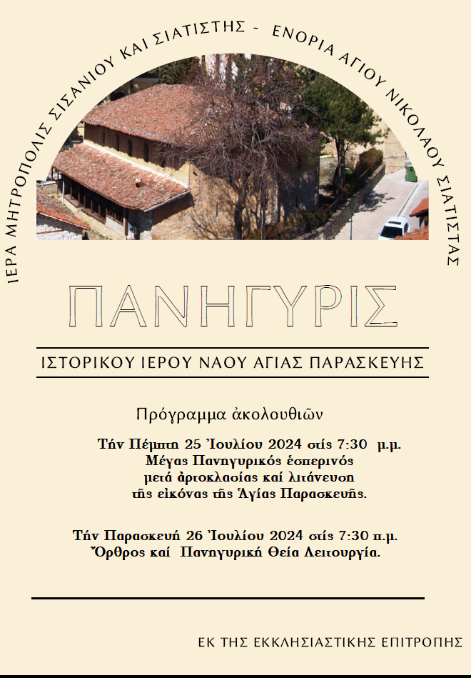 Πανήγυρις Ἱστορικοῦ Ἱεροῦ Ναοῦ Ἁγίας Παρασκευῆς Σιάτιστας.