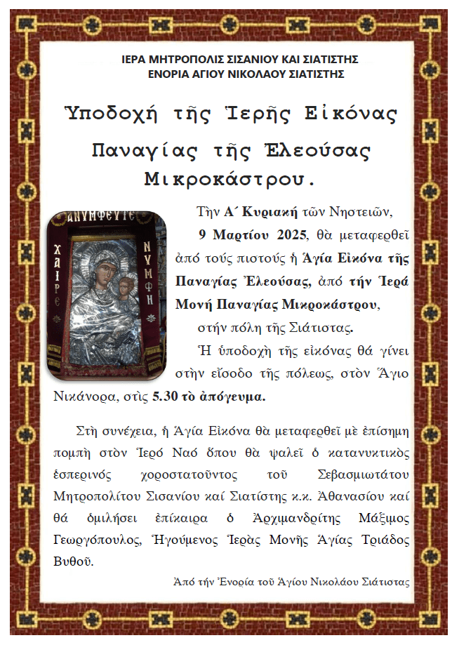 Ὑποδοχή τῆς Ἱερῆς Εἰκόνας Παναγίας τῆς Ἐλεούσας Μικροκάστρου στὴν Ἐνορία τοῦ Ἁγίου Νικολάου.