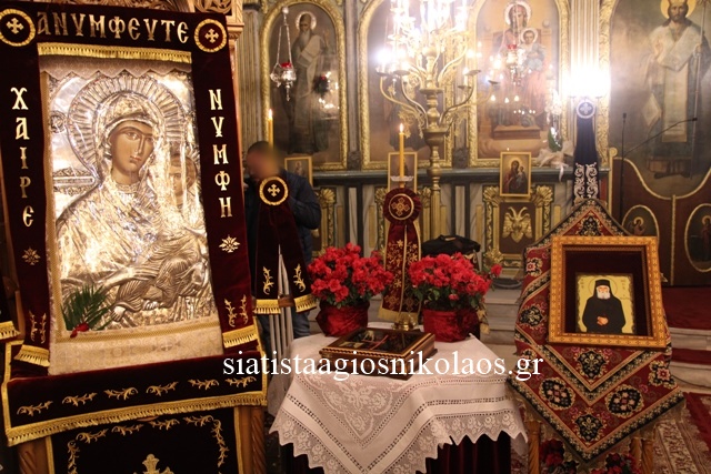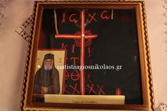 Η αυτεπίγνωση έχει κυρίαρχη θέση σ’ αυτήν την πορεία γιατί αυτός που αγνοεί τον εαυτό του δεν έχει τη δυνατότητα να γνωρίσει το Θεό. Τα γνωρίσματα που προσελκύουν τη Θεία Χάρη είναι: Η πίστη – το θείο χάρισμα που μας καθιστά εικόνα Θεού. Η ευσέβεια – η επιστήμη του πως υπηρετείς το Θεό και η ελπίδα που δεν ντροπιάζει. Ακολουθώντας το Χριστό συνταυτίζουμε τη θέληση μας με τη θέληση Του. Μεγάλη ευλογία ήταν η προσκύνηση ιερών αντικειμένων του Αγίου Παϊσίου: Το μεγάλο σχήμα και το σκουφάκι. Μετά το δι’ ευχών ο π. Λούπος μοίρασε σε όλο το ευσεβές εκκλησίασμα από μια εικονίτσα ευλογία του Αγίου Νεκταρίου.
