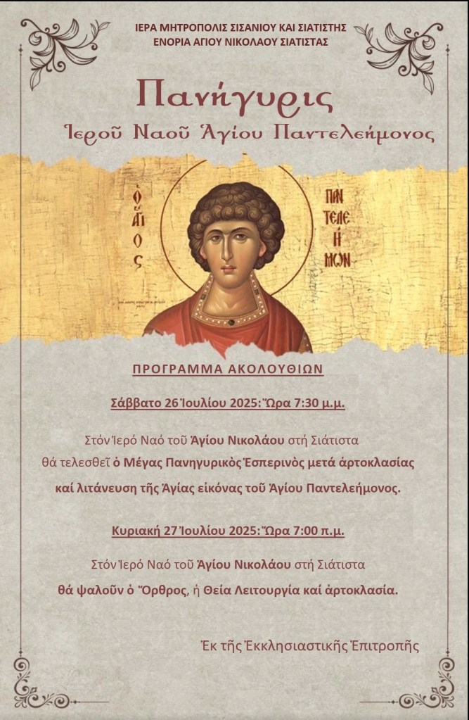 Ἑορτή Ἁγίου Παντελεήμονος Σιάτιστας.
