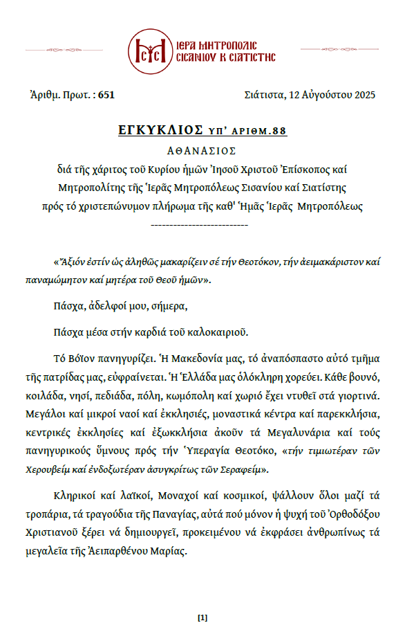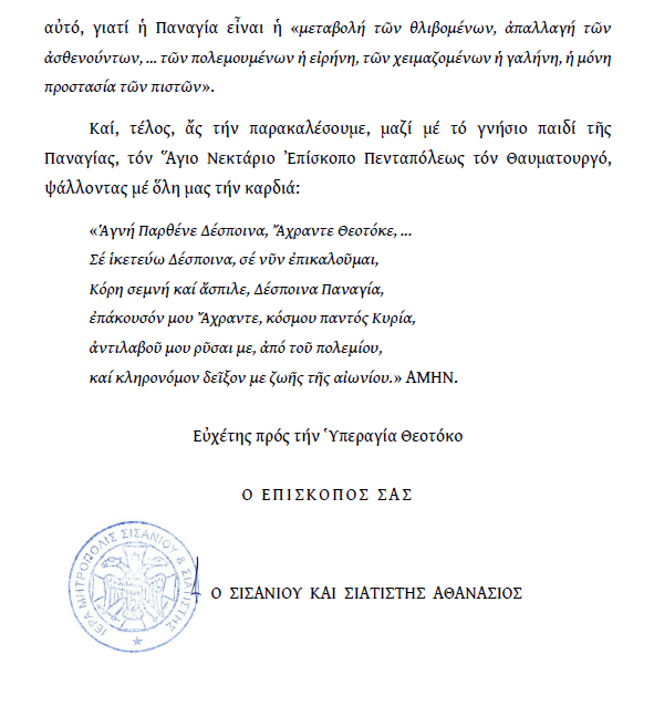 • Ἐγκύκλιος τοῦ Σεβασμιωτάτου Μητροπολίτου Σισανίου καί Σιατίστης κ.κ. Ἀθανασίου.
