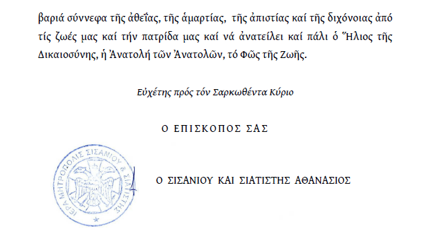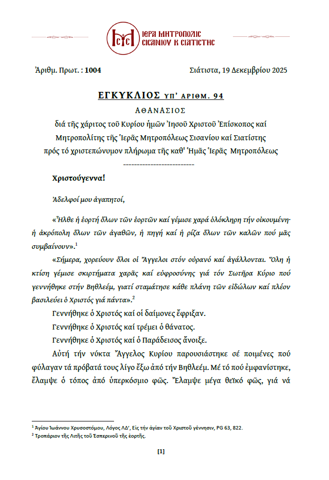 Εγκύκλιος του Σεβασμιωτάτου Μητροπολίτου Σισανίου και Σιατίστης κ.κ. Αθανασίου επί τη εορτή των Χριστουγέννων.