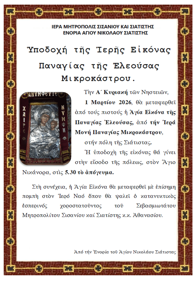 Ὑποδοχή τῆς Ἱερῆς Εἰκόνας Παναγίας τῆς Ἐλεούσας Μικροκάστρου στὴν Ἐνορία τοῦ Ἁγίου Νικολάου.