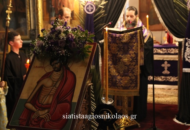 Όταν οι Ιεροψάλτες έψαλλαν «Ιδού ο Νυμφίος…», με ευλάβεια μετέφεραν λιτανευτικά την Εικόνα του «Νυμφίου» Χριστού και την απέθεσαν στο προευτρεπισμένο προσκυνητάρι. Οι πιστοί που συμμετείχαν, είχαν την ευλογημένη ευκαιρία να βιώσουν, υπό το ιλαρό φως των καντηλιών, το κάλεσμα του αιωνίου «Νυμφίου» της ψυχής και να προσευχηθούν.