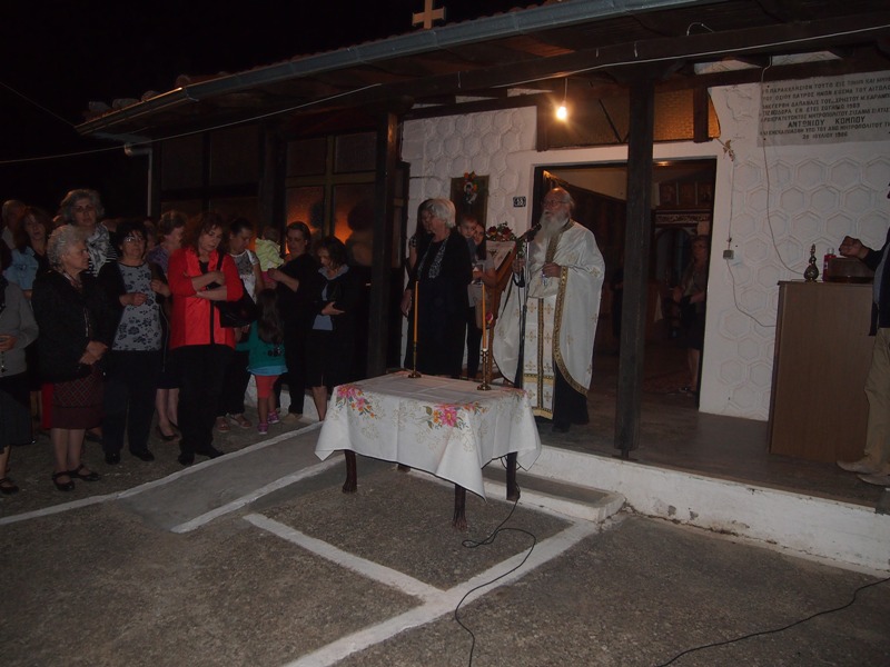 Την Δευτέρα 14 Αυγούστου, παραμονή της εορτής, εψάλη ο Μέγας Πανηγυρικός Εσπερινός μετά αρτοκλασίας από τους Ιερείς π. Βασίλειο Βασιλείου και π. Νέστορα Γκουρομίσιο.