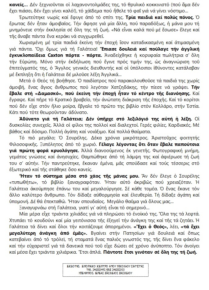 Μάνες, πολύτιμο στίγμα στην οικογένεια, υπάρχουν. Και αν σήμερα, μέσα σ’ αυτόν τον πειρασμό και την δοκιμασία, η Ελληνική οικογένεια κρατά αλλά δεν πέφτει, είναι γιατί κάποιες μάνες, σιωπηλές, γονατίζουν, προσεύχονται, μυστικά εκκλησιάζονται και συνεχίζουν να βάζουν λάδι στο καντήλι της θυσίας, για να κρατηθεί ζωντανή και αναστημένη η φλόγα.