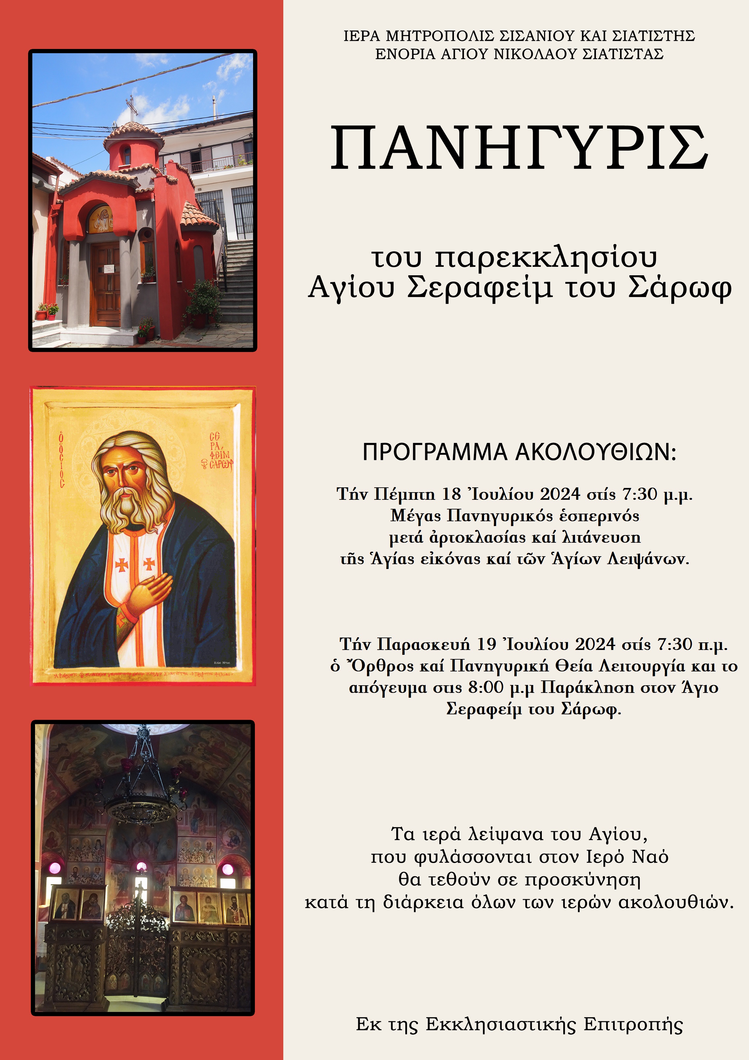 Δεν επιτρέπεται σχολιασμός στο Πανήγυρις τοῦ παρεκκλησίου Ἁγίου Σεραφείμ τοῦ Σάρωφ στή Σιάτιστα.