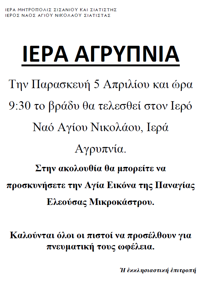 Το Σάββατο το απόγευμα 23 Μαρτίου 2024, εντός του Ιερού Ναού Αγίου Νικολάου Σιάτιστας πραγματοποιήθηκε η καθιερωμένη γιορτή των κατηχητικών σχολείων για την επέτειο της 25ης Μαρτίου 1821.