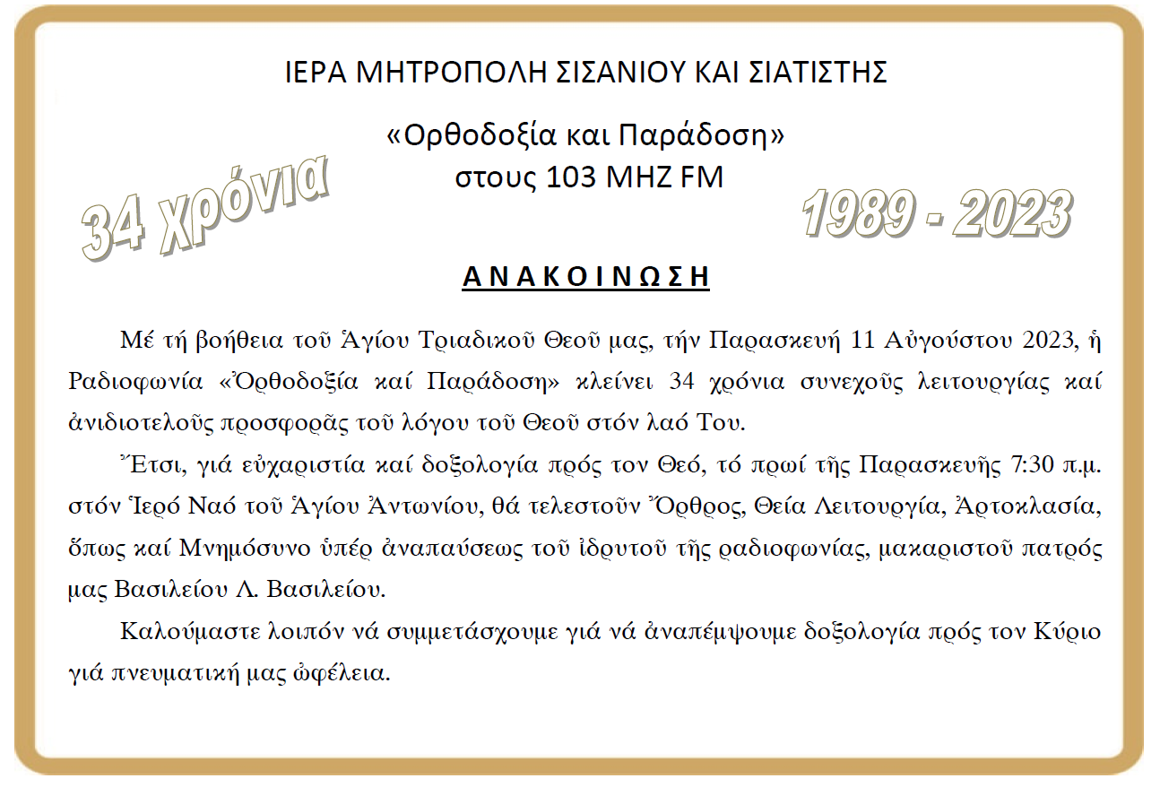 ΙΕΡΑ ΜΗΤΡΟΠΟΛΙΣ ΣΙΣΑΝΙΟΥ ΚΑΙ ΣΙΑΤΙΣΤΗΣ