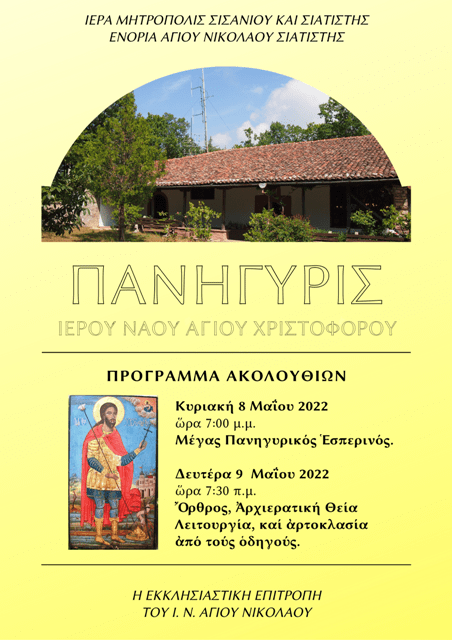 Πανήγυρις Ἱεροῦ Ναοῦ Ἁγίου Χριστοφόρου.