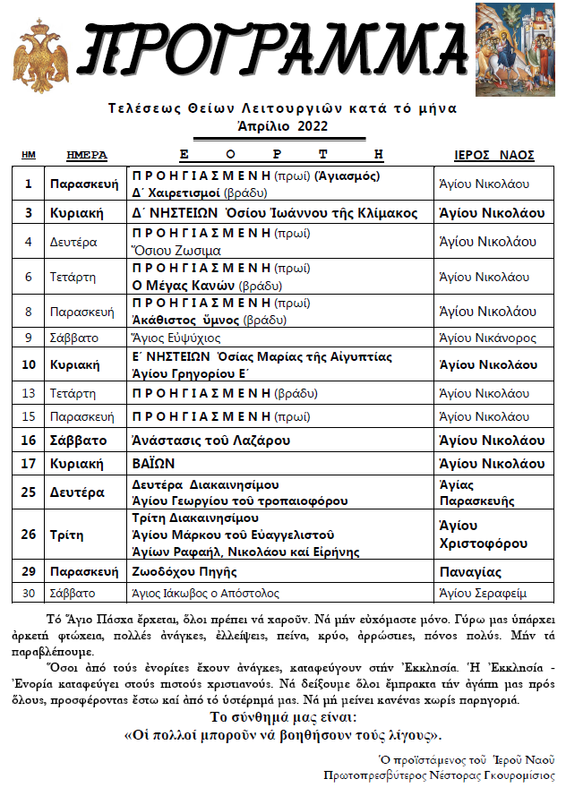 Η Αγία Εικόνα θα παραμείνει στην Ενορία μέχρι την Κυριακή των Βαΐων, απ’ όπου και θα αναχωρήσει για την Ιερά Μονή Μικροκάστρου.