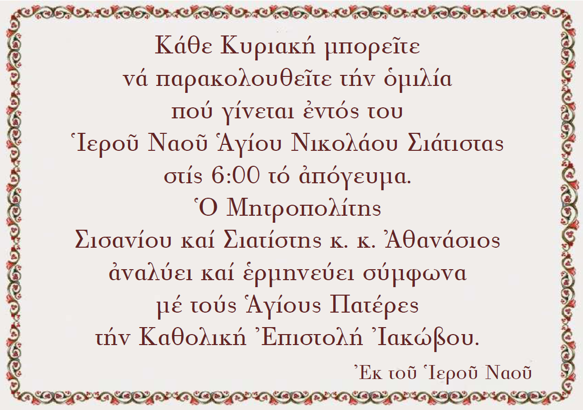 Οἱ ἑσπερινές ὁμιλίες στήν Ἐνορία τοῦ Ἁγίου Νικολάου Σιάτιστας.