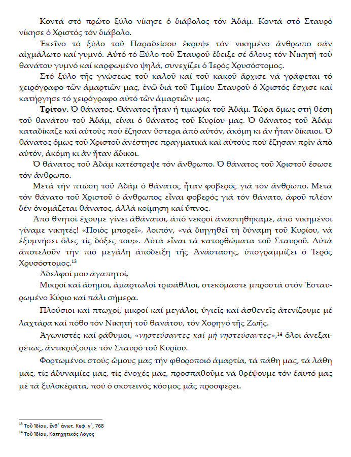 Τον θείο λόγο κήρυξε ο Πανοσιολογιώτατος Αρχιμανδρίτης π. Πολύκαρπος Αβραμίδης. Ο οποίος αναφέρθηκε στο ισχυρό όπλο των χριστιανών, τον Τίμιο και Ζωοποιό Σταυρό.