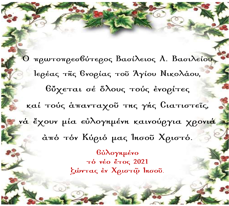 Εκοιμήθη ο Προϊστάμενος του Ιερού Ναού Αγίου Νικολάου Σιάτιστας, ο Πρωτοπρεσβύτερος Βασίλειος Λ. Βασιλείου σήμερα 17 Ιανουαρίου 2021.